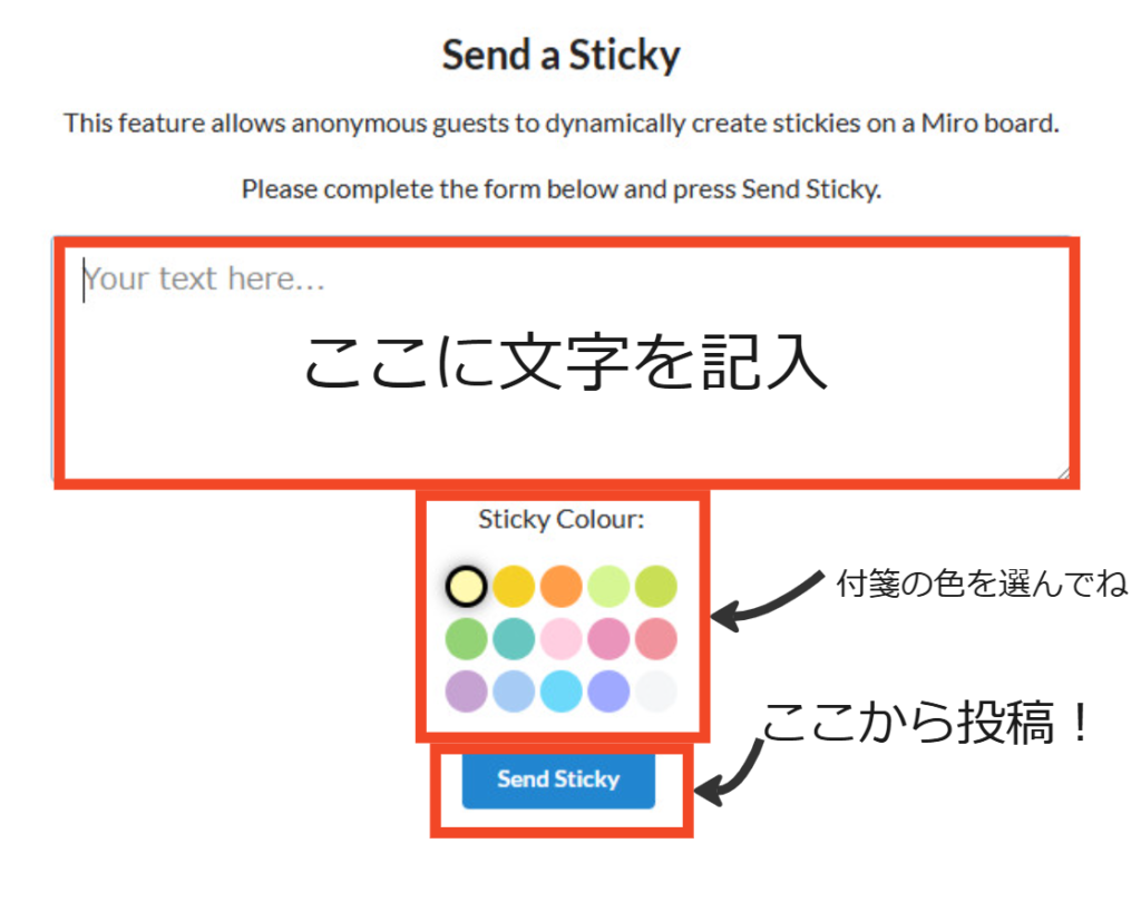 あなたが投稿したきもちや、みんなが投稿したきもちは下のサイト(オンラインホワイトボード)に付箋の形で表現されます。ぜひ、みなさんのきもちをみて、「そうそう」「こんな感じ方もあるんだ」などウォッチしてみてください。新しい発見があるでしょう😊